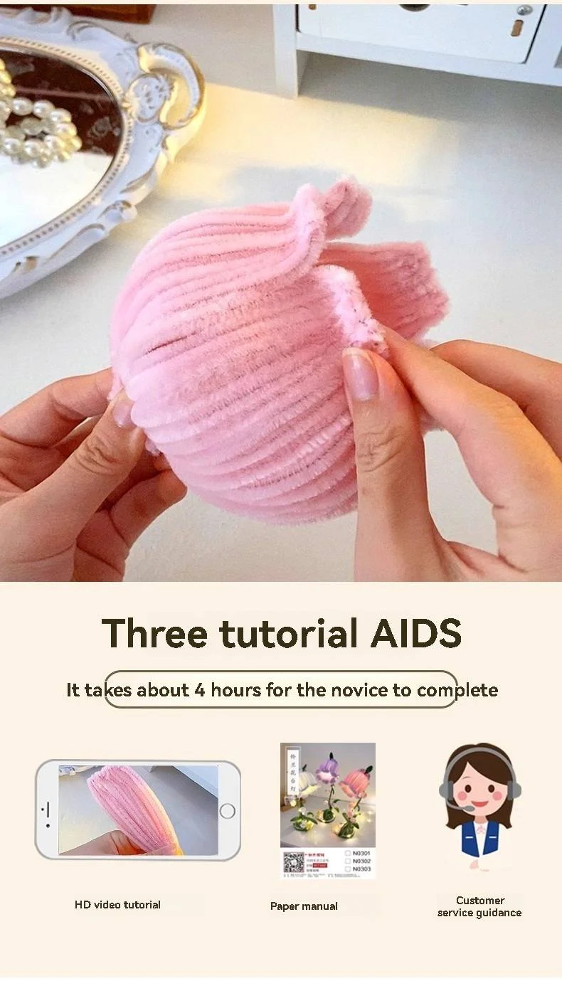 - Материал: шенилни пръчици (мек плюшен материал за ръчна изработка)